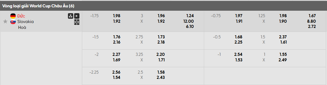 Tỷ lệ kèo Đức vs Slovakia