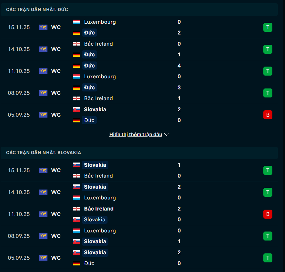 Phong độ Đức vs Slovakia